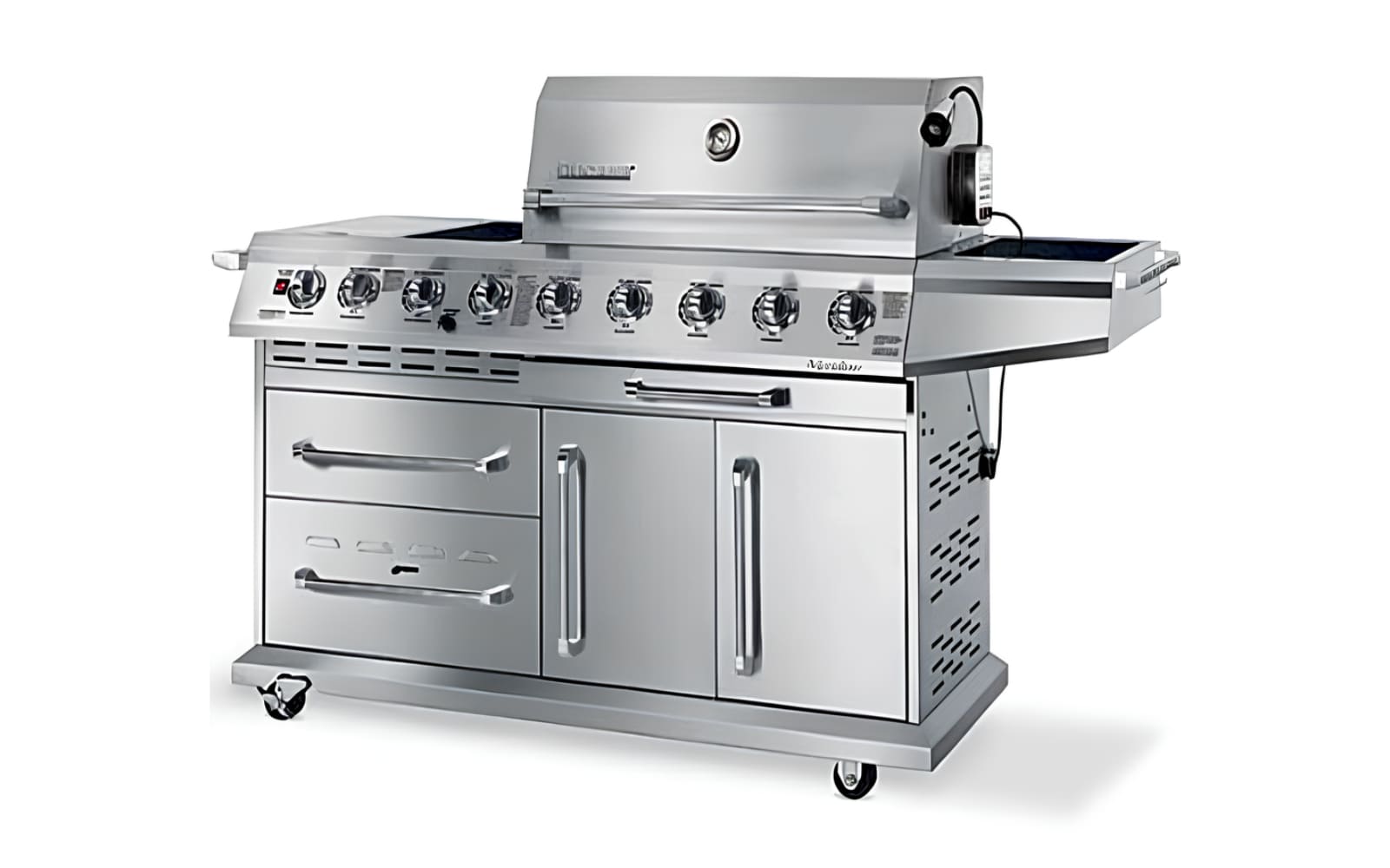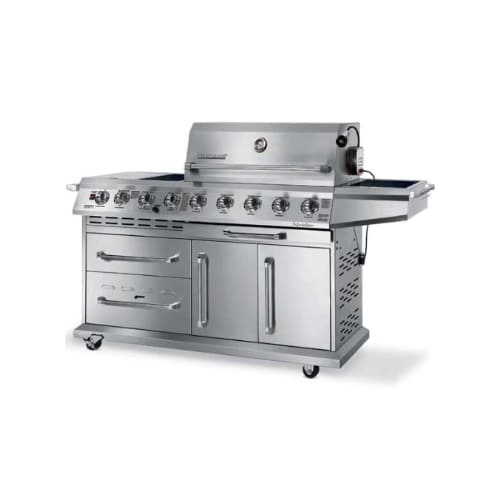 This flagship model delivers powerful performance with five stainless steel burners and a spacious 700 sq. inch cooking area, perfect for large gatherings and versatile outdoor cooking.
